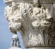 公元810年,Doge Agnello Participazio把政府所在地从Malamocco岛移至如今的里阿尔托(Rialto)地区,决定建造一座“公爵宫”(palatium duci,拉丁语,“公爵宫”)。然而,这座9世纪的建筑在10世纪的一场大火中被部分烧毁。下面的重建工作是在Doge Sebastiano Ziani(1172-1178)的要求下进行的。作为一个伟大的改革家,他将彻底改变整个圣马可广场的布局。新宫殿是用堡垒建造的,一个正面是广场,另一个是俯瞰圣马可盆地。虽然那座宫殿的遗迹已经所剩无几,但在一楼仍然可以看到一些拜占庭-威尼斯建筑的特色,墙底是伊斯特里安石砌成的,还有一些人字形的砖砌。