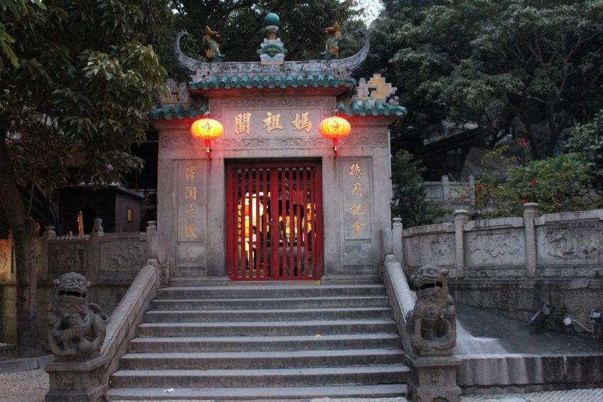 祖閣坐落在澳門東南方,媽閣山西面山腰之上,守望著珠海,是澳門媽祖文化的象徵,也是澳門三大禪院中最古老的一座,至今已有500多年的歷史,此景點已於2005年7月隨著澳門歷史城區一併列入《世界遺產名錄》。媽祖閣早期稱娘媽廟、天妃廟或海覺寺;後定名為“媽祖閣”,華人俗稱“媽閣廟”。媽閣廟前地是葡萄牙人最早登陸澳門的地方,正是中葡文化融合的起點。媽閣廟前的葡式碎石與媽閣廟中式設計成強烈對比,正好體現中西交融的特徵,因此不要放過拍張照片留念的機會。