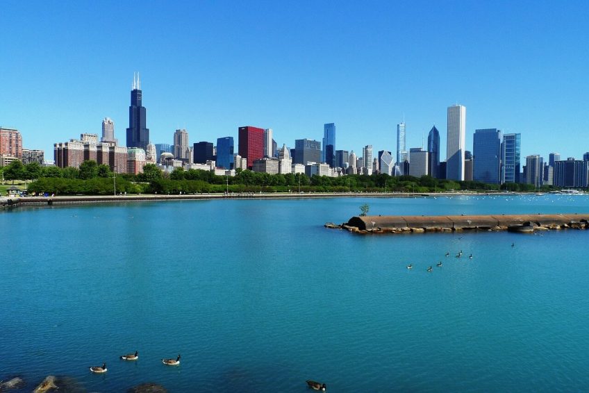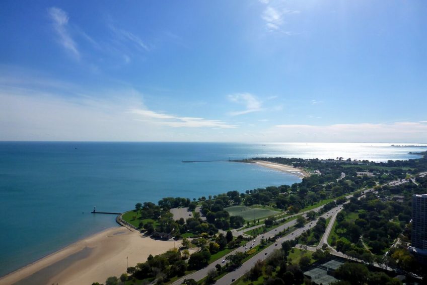 芝加哥城市滨水区由公园、海滩、港口和码头,以及由芝加哥湖滨步道连接的住宅区组成。在没有海滩或码头的地方,石头或混凝土护岸可以保护海岸线不受侵蚀。芝加哥的湖滨从城市的南部和北部到湖边有大约24英里(39公里)的距离。