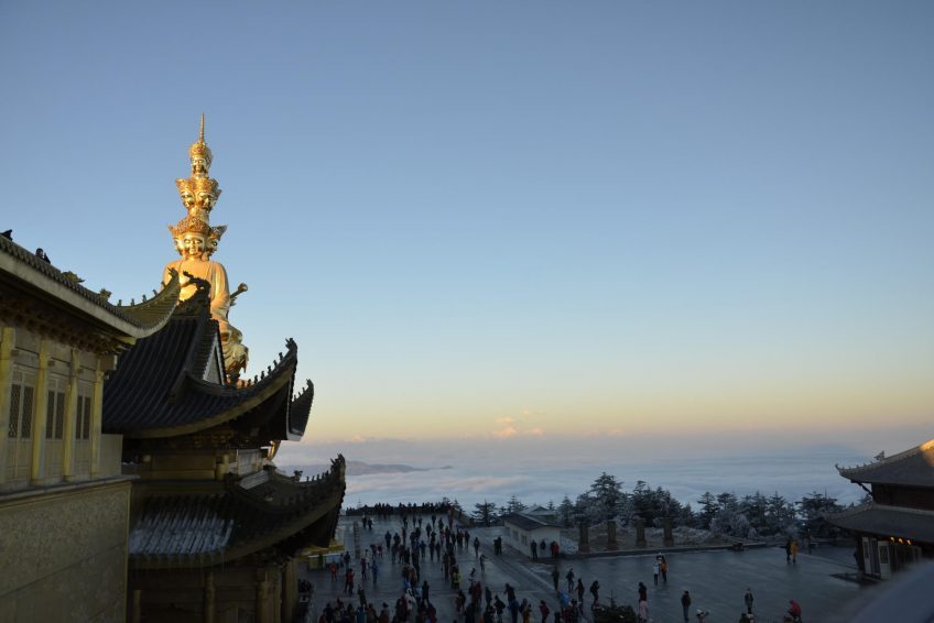 峨眉山(Mount Emei)山頭位於中國四川省樂山市峨眉山市境內,是中國“四大佛教名山”之一,地勢陡峭,風景秀麗,素有“峨眉天下秀”之稱,山上的萬佛頂最高,海拔3099米,高出峨眉平原2700多米。 《峨眉郡志》雲:“雲鬘凝翠,鬒黛遙妝,真如螓首蛾眉,細而長,美而艷也,故名峨眉山。”[1-2] 峨眉山處於多種自然要素的交匯地區,區系成分複雜,生物種類豐富,特有物種繁多,保存有完整的亞熱帶植被體系,有植物3200多種,約佔中國植物物種總數的1/10。峨眉山還是多種稀有動物的棲居地,動物種類達2300多種。山路沿途有較多猴群,常結隊向遊人討食,為該山一大特色。
