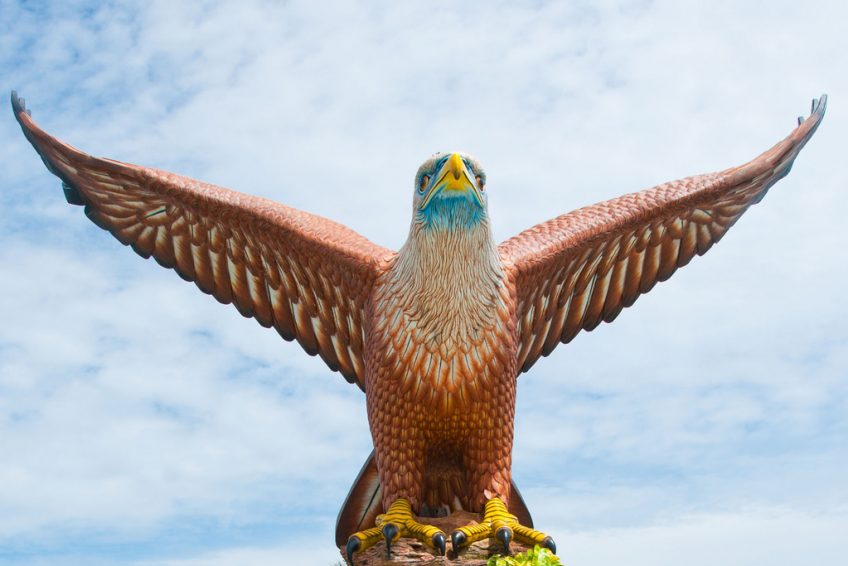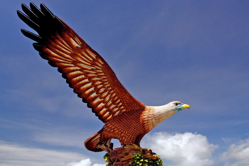 Dataran Lang的红褐色老鹰被建造成岛上的象征。根据民间传说,兰卡威的名字来自两个马来语 – ‘helang’(鹰)和’kawi’(红褐色):因此lang-kawi。