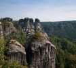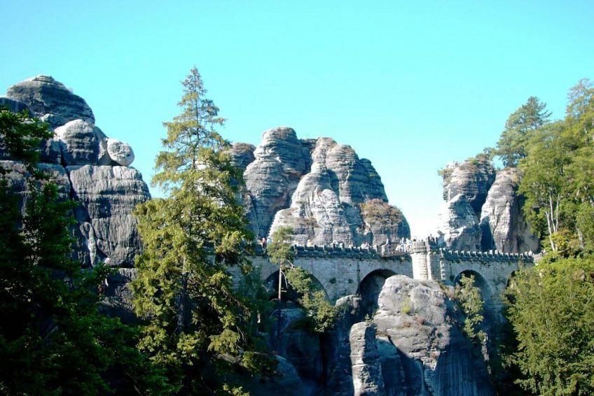 Bastei是位於德國易北砂岩山區的易北河194米高的岩層。巴斯蒂河的鋸齒狀岩石海拔305米,是一百多萬年前水蝕形成的。它們坐落在拉森附近,離德累斯頓東南的皮納不遠,是撒克遜人瑞士國家公園的主要地標。它們也是延伸到瑞士(捷克共和國)邊境的登山和徒步旅行區域的一部分。