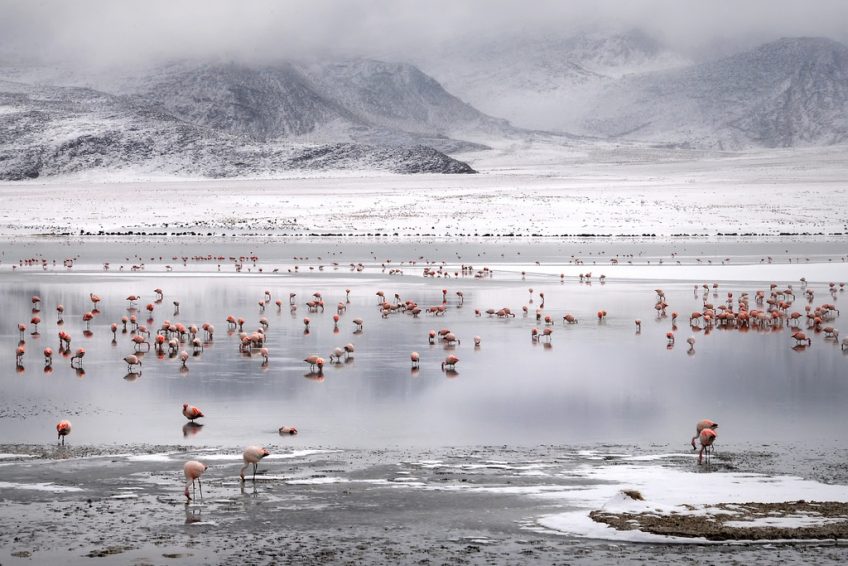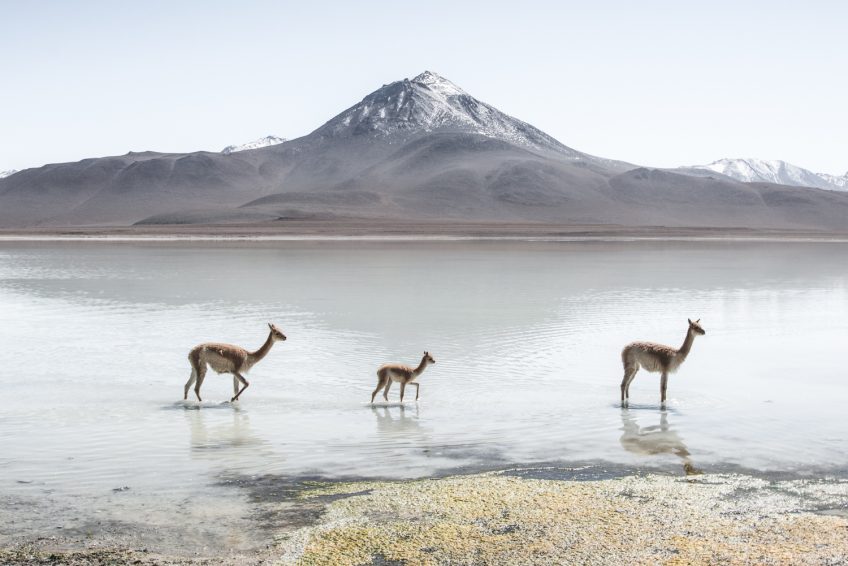 只有一条狭窄的走廊将Laguna Blanca与较小的Laguna Verde隔开。 两者都在Eduardo Avaroa Andean Fauna国家保护区内