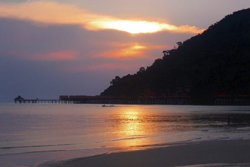 如果您面向水邊,Berjaya Resorts及其海濱小屋位於右側,Mutiara Bay Beach Resort位於左端(Mutiara酒店已關閉)。