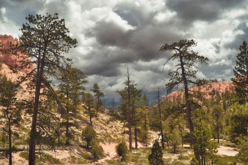 布莱斯峡谷国家公园位于犹他州西南部,东北方向约50英里(80公里),比锡安国家公园高1000英尺(300米)。因此,布莱斯峡谷的天气比较凉爽,公园的降水量也更多:每年总共有15到18英寸(380到460毫米)。每年从平均最低气温变化9°F(−13°C)在1月份平均最高83°F(28°C)在7月,但是极端温度的范围可以从−30到97°F(−34 36°C)。在公园里创纪录的高温是98°F(37°C)7月14日,2002年。创纪录的低温是−28°F(−33°C)12月10日,1972年。