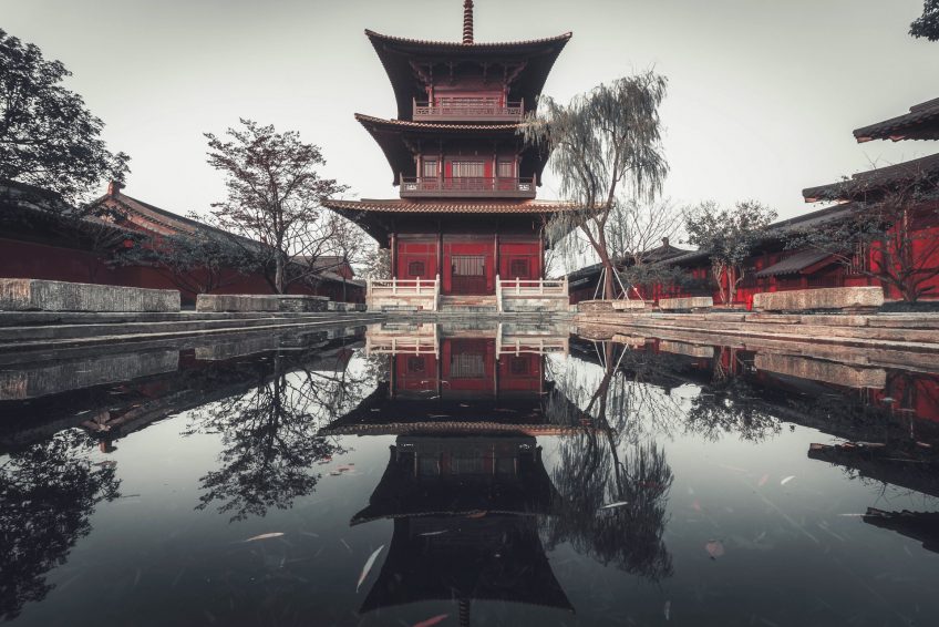 新白Temple寺(BáiĐínhTânTự)占地700公顷,位于Ba Rau山上,靠近Hoang Long河。这是一个大型综合建筑,包括从2003年开始建造的多个建筑,最终于2010年完工。[2]寺庙的建筑遵循传统的线路,包括大厅,庭院和围墙。然而,Bai Dinh的巨大规模使其与以前建造的越南佛塔有着惊人的不同。最大的建筑物TamThếHall,屋顶山脊高达34米,长度超过59米。[2]建筑材料包括NinhBình的当地采石和木材以及BátTràng的瓷砖(钢筋混凝土)因建筑规模而被雇用。寺庙坚持传统的越南设计美学,其曲线顶尖和角檐向外和向上翱翔,类似凤凰的尾巴。选择当地手工艺村手工作品内部,从青铜雕塑Ý日元,从石刻宁凡,从木材木工PHU LOC,并从刺绣宁海。