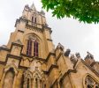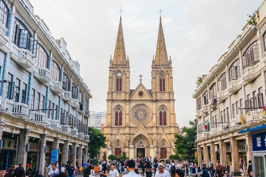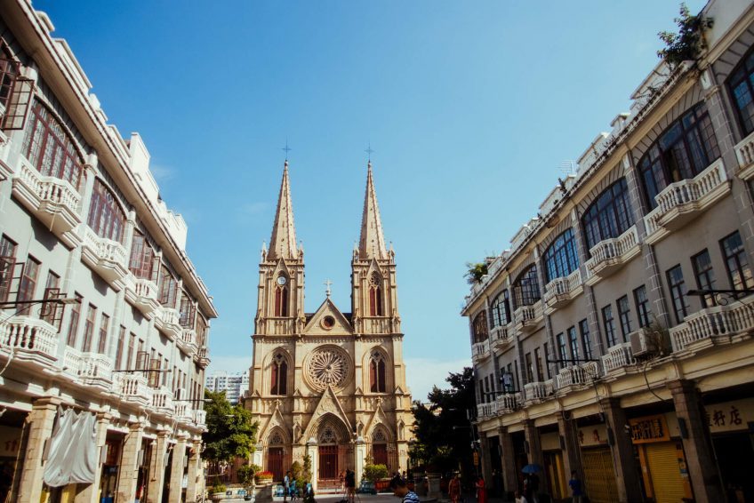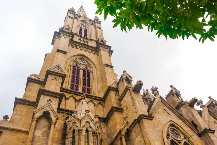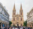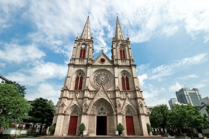 廣州石室教堂位於廣州市繁華地帶,教堂整個建築的精美與價值都無不體現了建築藝術的巧妙元素如:高聳的塔樓、屋頂的尖拱、巨型的束柱強勁的飛扶壁等。教堂用巧妙之感將這幾個元素完美地結合在一起形成了廣州石室教堂外形的挺拔巍峨,堂內空間的深遠之感,巨大石柱的雄健,花式窗櫺精美的做工,窗色的色彩斑斕等,都使廣州石室教堂外有著莊嚴而雅緻的氣氛。你可以不信教,但很美的廣州石室教堂值得一去!要記得開放時間哦,因為其它時間是不接受散客進入的。如果你想在廣州石室教堂感受最原色的彌撒、肅穆的宗教氣氛,那就趕快到廣州石室教堂旅遊吧。廣州石室教堂詳細介紹:石室聖心大教堂坐落於廣州市區中心的一德路,是天主教廣州教區最宏偉、最具有特色的一座大教堂,建於1863年,落成於1888年,歷時25年建成,至今有130多年的歷史。由於教堂的全部牆壁和柱子都是用花崗岩石砌造,所以又稱之為“石室”或“石室耶穌聖心堂”、“石室天主教堂”。是省重點文物保護單位。教堂建築總面積為2754平方米,東西寬35米,南北長78.69米,由地面到塔尖高58.5米。教堂屬“哥特”式建築,可與聞名世界的法國巴黎圣母院相媲美。教堂正面是一對巍峨高聳的雙尖石塔,高插雲霄。石塔中間西側是一座大時鐘,東側是一座大鐘樓,內有四具從法國運來的大銅鐘;堂內是尖形肋骨高叉的拱形穹窿;正面大門上面和四周牆壁分佈的花窗櫺,都是合掌式,所有門窗都以法國製造的較深的紅、黃、藍、綠等七彩玻璃鑲嵌。這玻璃可避免室外強光射入,使室內光線終年保持著柔和,形成慈祥、肅穆的宗教氣氛。石室天主堂周圍,一年四季樹木常青,鮮花簇擁,五彩繽紛。目前世界各地的信徒和遊人都到石室觀光。