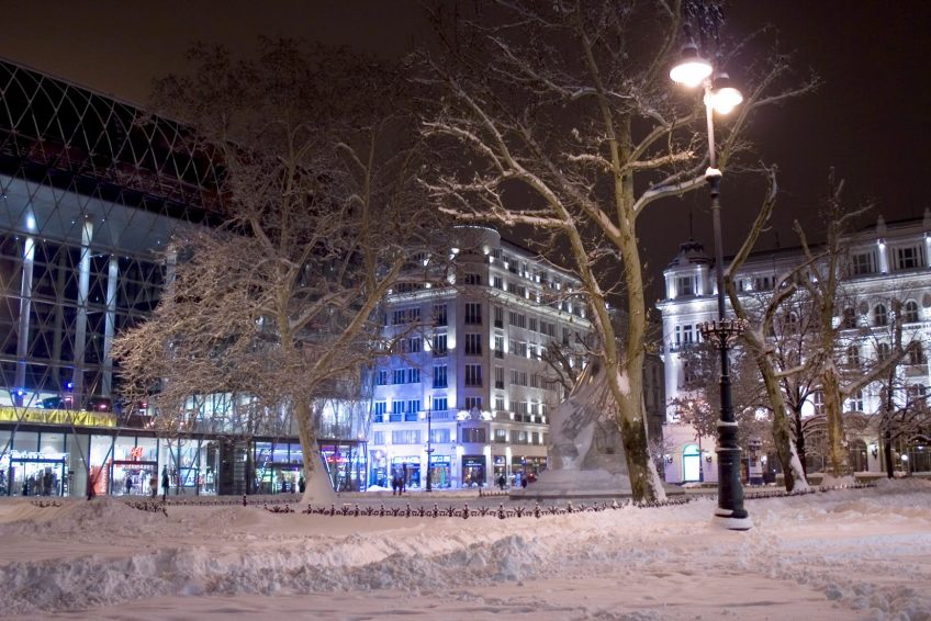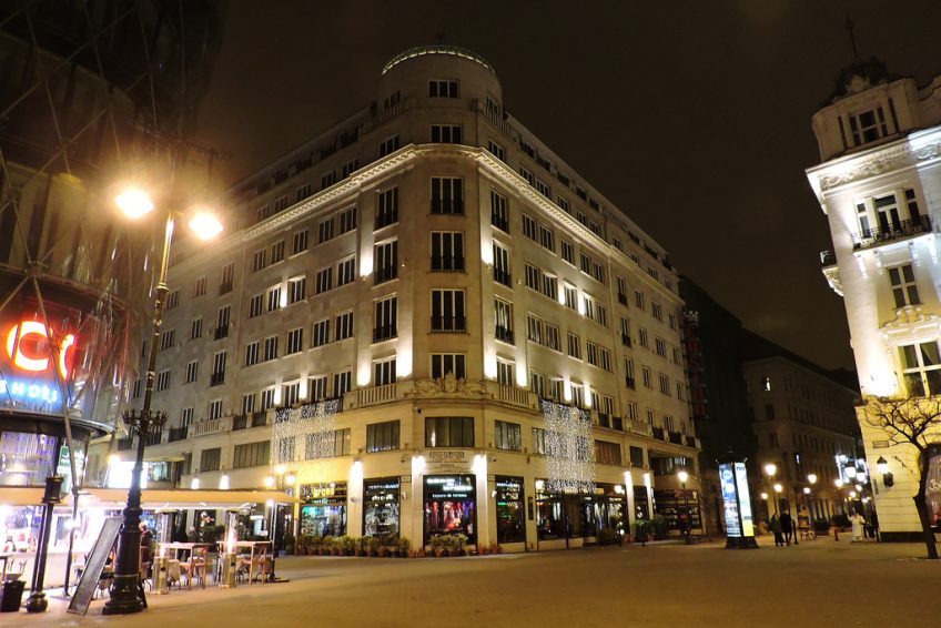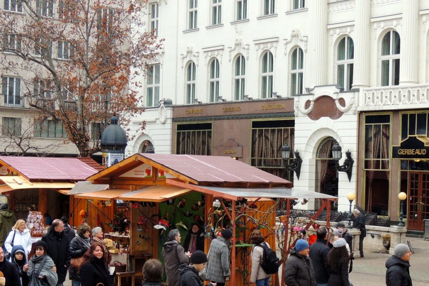 弗洛斯馬提廣場是最優雅的步行區 在布達佩斯。它位於Váci街 的北端,位於千禧地鐵的西端(地鐵1號線)上方。它的架構非常多樣化。在廣場的北側矗立著不拘一格的Gerbeaud House,這裡是世界著名的匈牙利糖果店。在東側,宏偉的新藝術風格建築矗立,面對現代建築的傑作,玻璃泡沫與豪華公寓和商店。