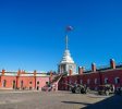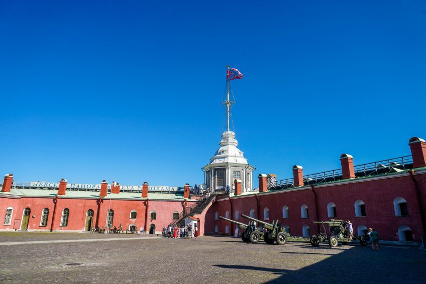 Ioannovsky Gate直接帶您前往由Ioannovsky Ravelin和Petrovskaya幕牆組成的庭院。 ravelin設有售票處,您可以在那裡購買堡壘博物館,大教堂和監獄的門票。 Petrovskaya幕牆是堡壘的東牆。有六個這樣的牆壁 – Petrovskaya,涅瓦,Ekaterininskaya,Vasilievskaya,和的Nikolskaya Kronverkskaya。他們一起橋接了六個五角堡壘,這些堡壘能夠在堡壘遭到襲擊時提供全面的防禦。