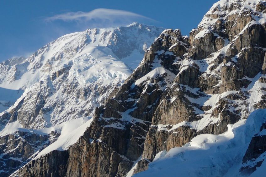 德纳里国家公园和自然保护区位于阿拉斯加山脉的中心地带,这条山脉绵延600英里(970公里),横跨阿拉斯加。它最著名的地质特征是德纳里,前身是麦金利山。它海拔20310英尺(6190.5米),是北美最高的山。它的垂直起伏(从基地到山顶的距离)是18000英尺(5500米),是世界上最高的山。由于北美和太平洋板块的持续汇合,这座山每年仍在上升约1毫米(0.039英寸)。这座山主要由花岗岩构成,坚硬的岩石不易腐蚀;这就是它保持如此高的高度而不是被侵蚀的原因。