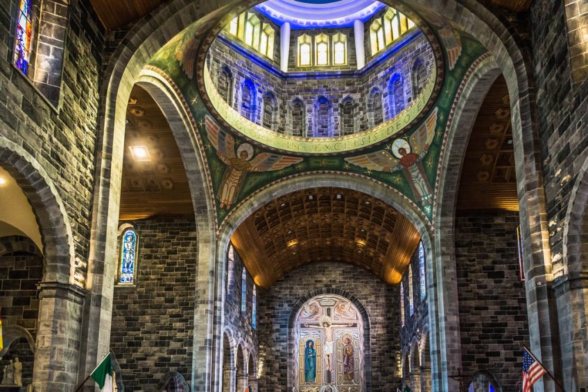 戈爾韋大教堂建於20世紀50年代後期,當時大多數類似的建築都在使用混凝土。因此,它是歐洲最年輕的石頭大教堂。致力於聖母升天堂和聖尼古拉斯,它由JJ Robinson設計,風格非常折衷。它包括一些文藝復興時期的細節以及羅馬式和哥特式的傳統。