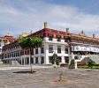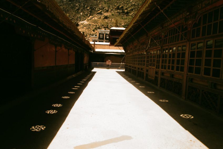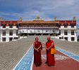 哲蚌寺坐落于拉萨西郊的山坳之中,是藏传佛教最大的寺院。寺院的建筑群规模宏大,白色的房屋和红色殿堂鳞次栉比的铺满山腰,远远望去像是巨大的米堆,对着山腰拍摄出的照片非常壮观。它是藏传佛教格鲁派中地位最高的寺院,内部建筑即大气又金碧辉煌,充满了很多美丽的珍宝,还有僧人的辩经仪式可以观看。