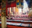 每年8月拉薩雪頓節期間,甘丹寺也會舉辦盛大的曬佛儀式,雖然規模不如哲蚌寺,但也隆重盛大。此外,每年藏歷10月25日是宗喀巴大師的忌日,寺內白天要懸掛長26米寬10米的巨大佛像,夜間則全寺燃燈示敬,儀式頗為隆重,藏語稱“甘丹昂卻”,就是漢語的“燃燈節”。