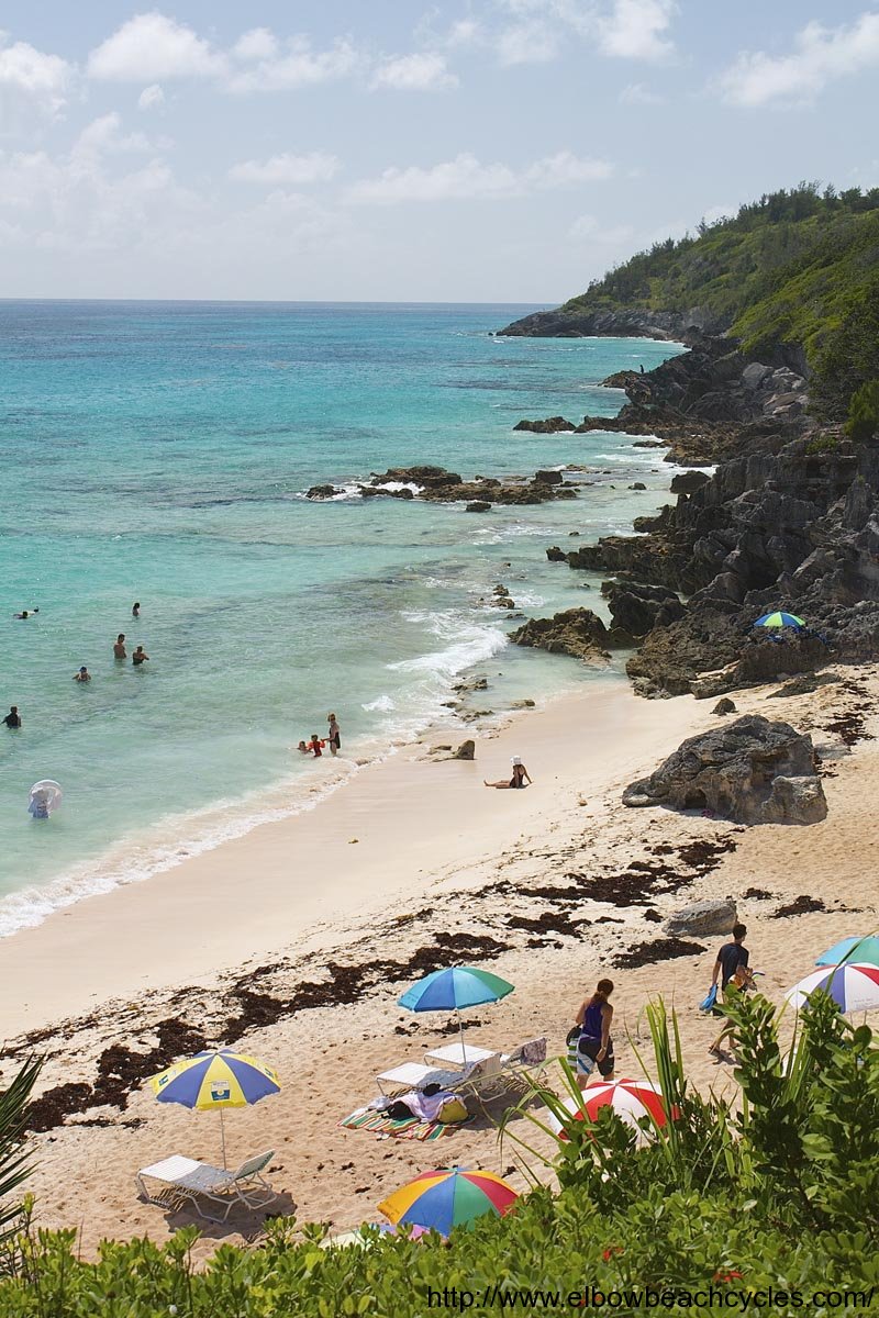 Church Bay海灘位於百慕大的南安普敦教區。它一直是我們浮潛的最佳選擇之一。這是一個由南岸海灘西端珊瑚峭壁形成的小海灣。海灘區非常小,在漲潮時幾乎消失。我們通常乘坐#7巴士到達教堂灣海灘公園。海灘公園位於一座小山頂。巴士站停靠在停車場附近。一條陡峭的小路和公園的樓梯通往這個美麗的海灘。