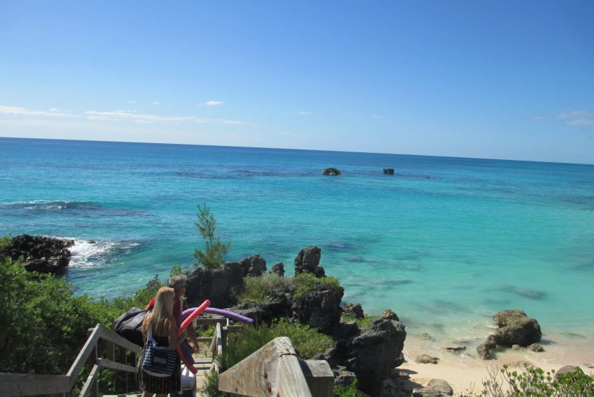 Church Bay海滩位于百慕大的南安普敦教区。 它一直是我们浮潜的最佳选择之一。 这是一个由南岸海滩西端珊瑚峭壁形成的小海湾。 海滩区非常小,在涨潮时几乎消失。 我们通常乘坐#7巴士到达教堂湾海滩公园。 海滩公园位于一座小山顶。 巴士站停靠在停车场附近。 一条陡峭的小路和公园的楼梯通往这个美丽的海滩。