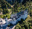 在中世纪,有三座城堡俯瞰着村庄。其中一个叫做施旺斯坦城堡。1832年,路德维希的父亲、巴伐利亚国王马克西米利安二世买下了这座宫殿的遗址,用舒适的新哥特式宫殿Hohenschwangau城堡取而代之。这座宫殿于1837年竣工,成为他家的避暑别墅,他的大儿子路德维格(生于1845年)在这里度过了童年的大部分时光