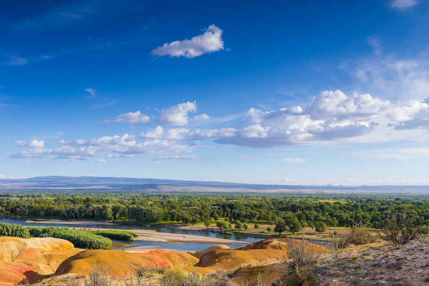 多色湾距布尔津县约24公里。它面向美丽的 额尔齐斯河, 横跨岸边。多色湾属于雅丹地貌,因为它位于沙漠地区,一年四季都有黑色,因此河流和风的严重侵蚀形成了特有的雅丹地貌,山势陡峭,奇怪的小丘。虽然银行中的岩石含有不同类型的矿物质,但它们在阳光下显示出不同的颜色。