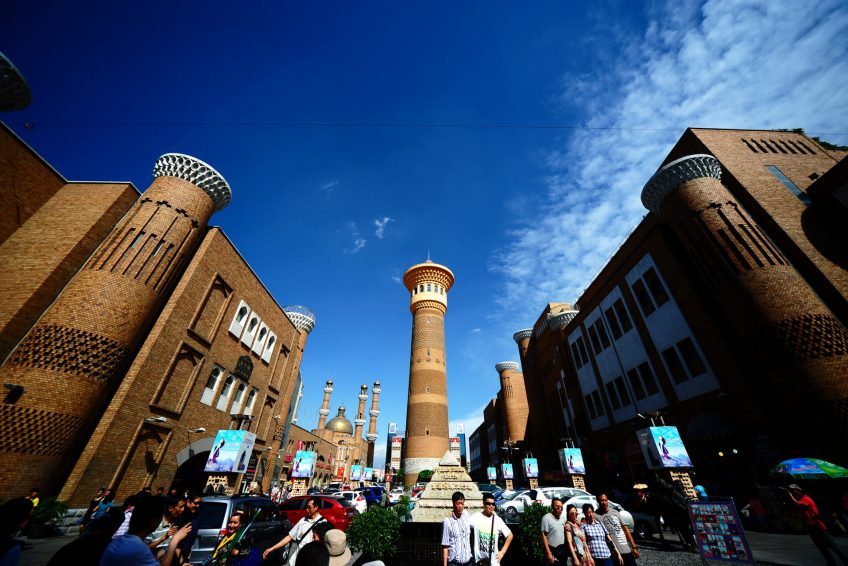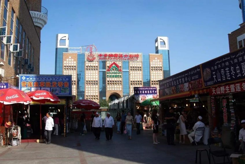 新疆國際大巴扎是新疆烏魯木齊的大型地標建築,2003年落成,伊斯蘭建築風格,總建築面積10萬平方米,位於天山區解放南路與團結路交匯處的二道橋,是新疆最大的民族特色購物市場。大巴扎包括美食廣場、宴會廳、觀光塔和一座清真寺。