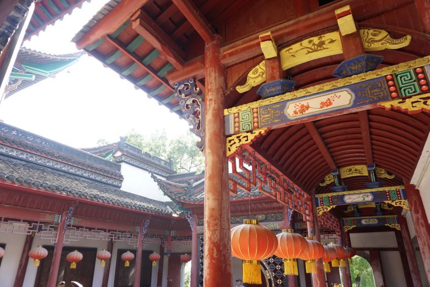 晴川阁位于武汉市汉阳区龟山东麓、洗马长街的禹功矶上,北为汉水,东为长江,与黄鹤楼隔江相望。晴川阁景区的整体建设从1984年开始复建,历5年而完成,是武汉市著名的文物旅游景观。整个晴川阁占地约8000平方米,主要由晴川楼、禹稷行宫、铁门关三大主体建筑和其他附属建筑群组成。