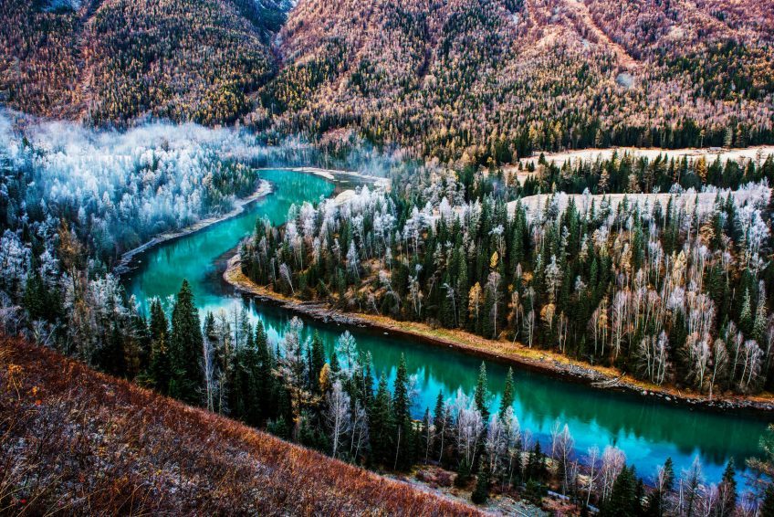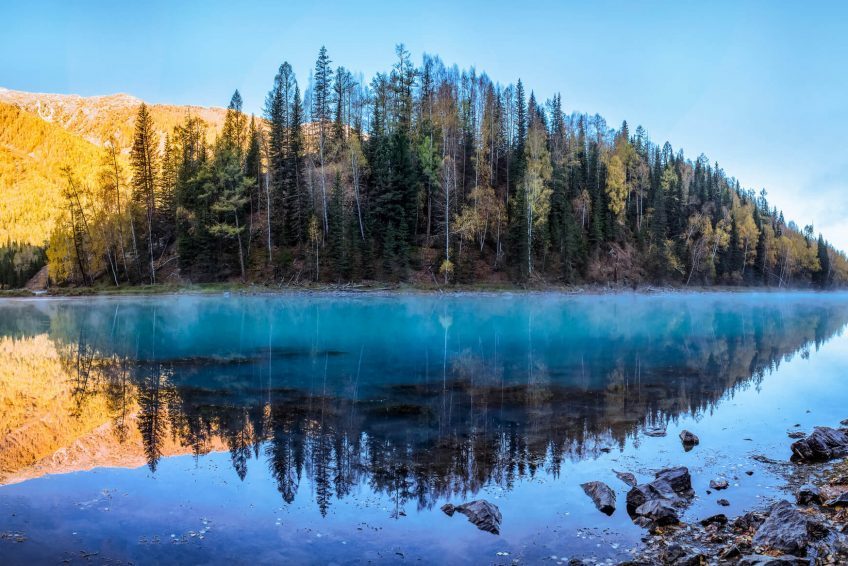 月亮湾是喀纳斯最著名的景点,位于卧龙湾沿哈纳斯河北上约1公里处,是卧龙湾河曲的延伸部分,美丽静谧的月亮湾会随喀纳斯湖水变化而变化,确是嵌在喀纳斯河上的一颗明珠。