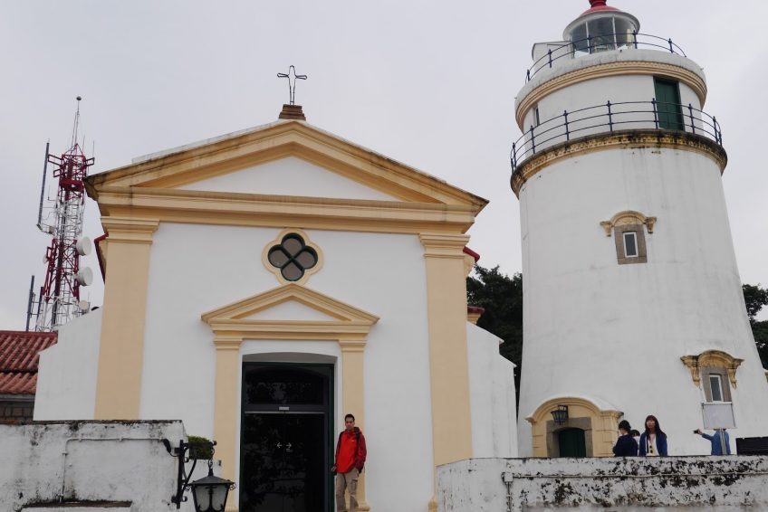灯塔侧的小教堂名为圣母雪地殿(建于1622年),教堂内的拱顶和墙身绘有彩色壁画,其绘画技巧融合中西艺术,是本地众多教堂中独一无二的。