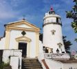 东望洋炮台位于东望洋山巅,是澳门半岛的最高点,建于1637至1638年间,有哨房、火药库、灯塔等。从回旋楼梯直上塔顶,可以俯瞰整个澳门半岛以及“澳门历史城区”,无敌景致尽收眼底,灯塔旁建有圣母雪地殿圣堂。