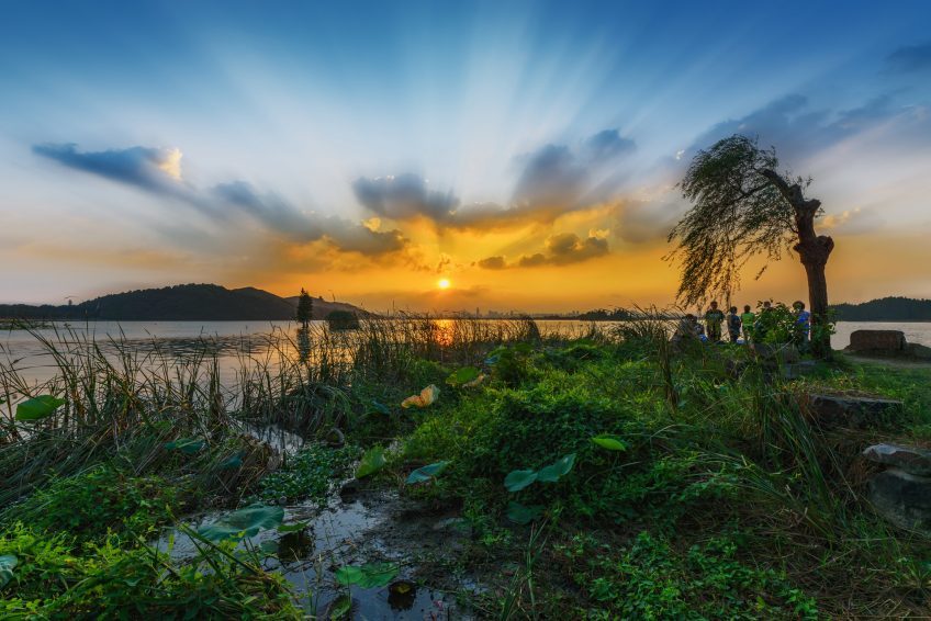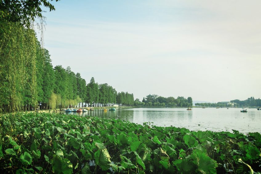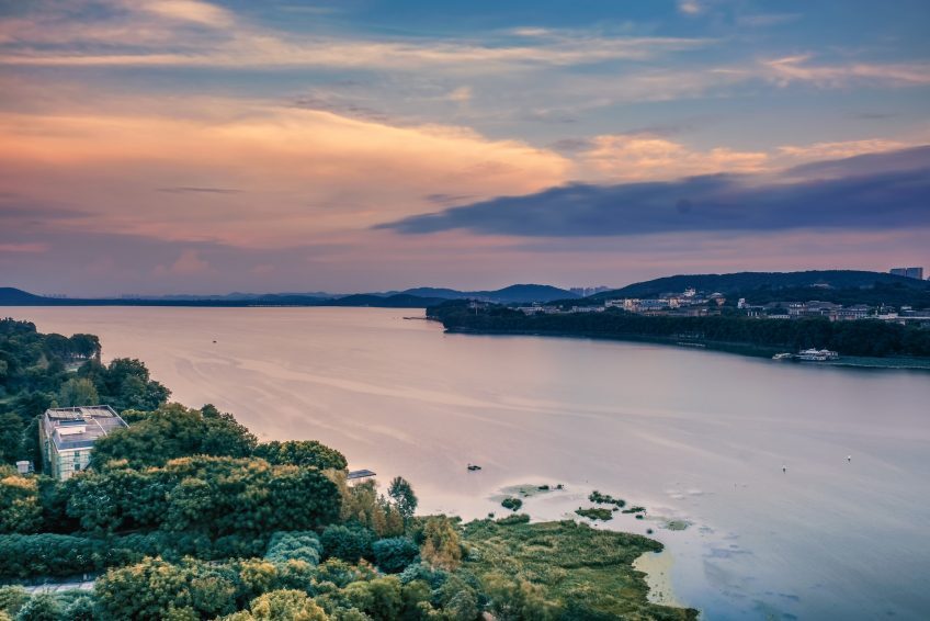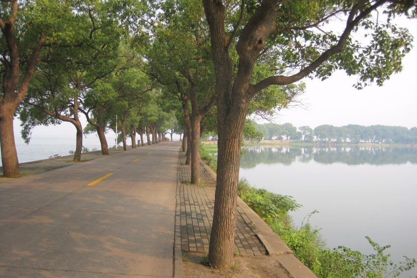 東湖在武漢市武昌區東郊,靠近市區,整個東湖風景區面積爲87平方公里,其中湖水面積約33平方公里,爲杭州西湖的5倍多。東湖湖岸曲折。湖南層巒疊翠,山擁水抱;湖東、湖西丘陵起伏;湖北地勢平坦。有人認爲它兼有太湖之浩淼和西湖之秀麗,是一個極有發展前途的風景區。