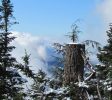 位于“切口”底部的区域——温哥华最著名的滑雪道之一——是这座山的原始基地,该地区的第一个小屋和绳索牵引就是在这里建造的。这个基地被当地滑雪者称为“村庄”,因为许多小屋建在小屋周围的树木和旧的剪接椅的基础上。一些小木屋仍然存在,它们位于旧的剪力椅电梯的下方和西面。为进入基地而修建的砾石路——古松鸡山公路(Old Grouse Mountain Highway)仍然存在,目前仅用于维护滑雪场。