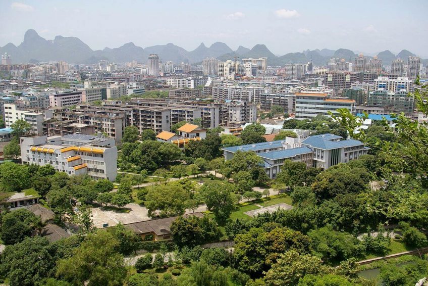 訾洲岛位于桂林市区中心漓江东岸水滨的訾洲上,和象鼻山隔江相望,是观赏象鼻山最佳角度之一,而且是桂林有史可考的最早的园林遗址。