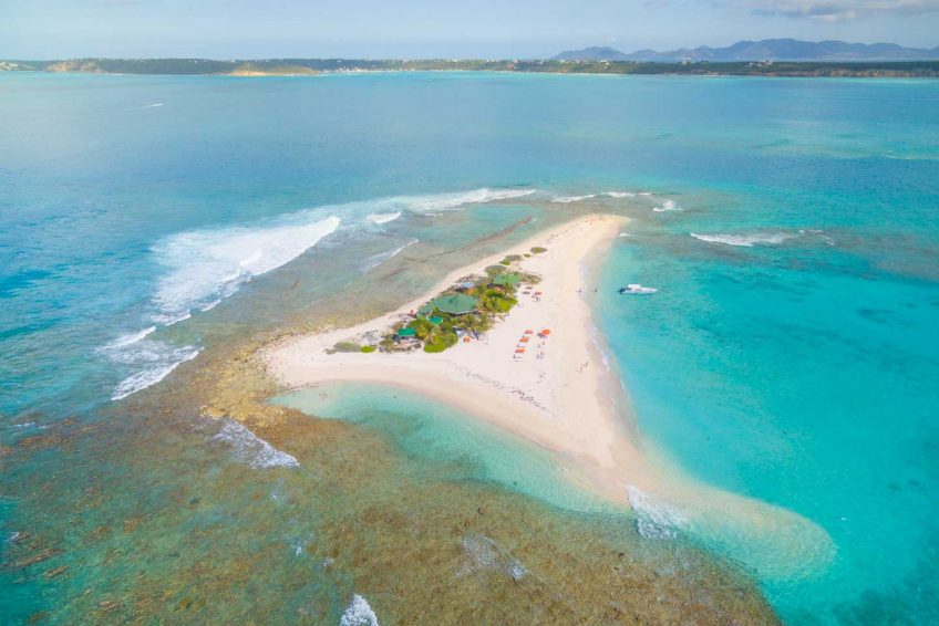 桑迪岛是一个小岛,岛上有一家当地的餐馆。从沙质地面到安圭拉只需15分钟,餐厅老板负责免费乘船过境。这个岛很小(约250×75米),由圆形的白色沙滩组成,中间有一些灌木和棕榈树的植被。