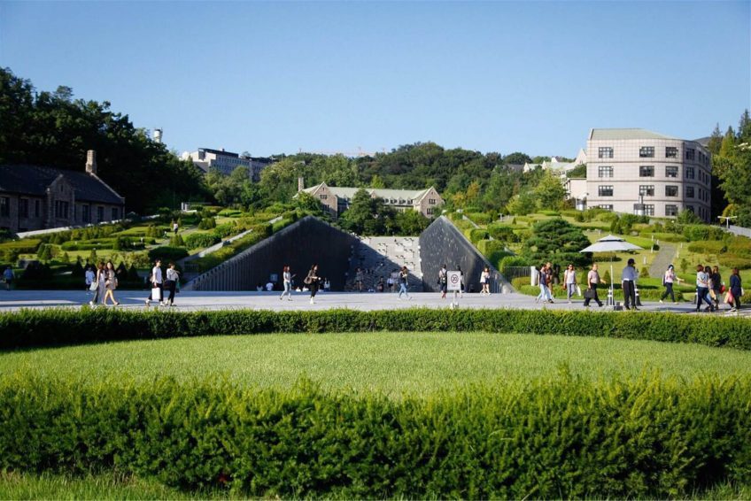 最近完成的ECC(梨花校园综合大楼;地下6层 – 1楼)是韩国最大的地下校园。较低的楼层包括图书馆,书店,健身房,电影院,咖啡馆和其他文化设施,而在第一层,游客可以找到演讲室和生态公园。ECC为学生提供各种服务,从学习到文化活动,都在同一屋檐下。