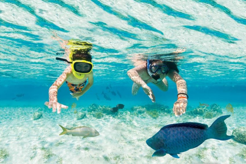 蓝鹦嘴鱼水上乐园有滑水道和一个小游泳池。岛上有“吃到饱”自助餐饮料和礼品店