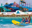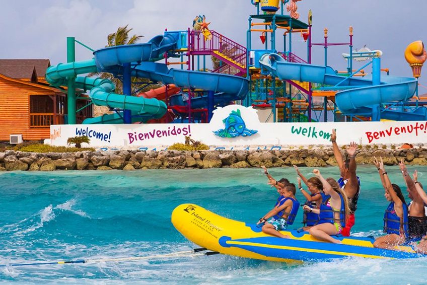 藍鸚嘴魚水上樂園有滑水道和一個小游泳池。島上有“吃到飽”自助餐飲料和禮品店