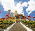 参观Kek Lok Si的最佳时间是在农历新年庆祝活动期间,当时寺庙装饰着成千上万个明亮的吊灯。在其他时间,还有很多值得一看的地方,有祈祷大厅,宝塔,钟楼和乌龟池。