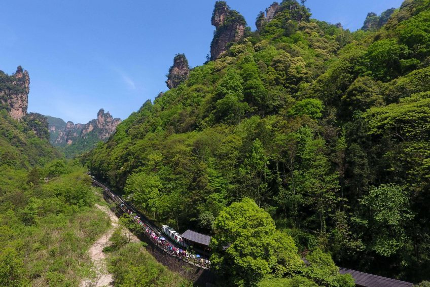 武陵源([ù.lǐŋ.ɥɛ̌n] ; 中文:武陵源)是中国中南部湖南省风景名胜区。它于1992 年被列为联合国教科文组织 世界遗产。[1]该地区大部分地区有超过3,000个石英岩 砂岩柱和山峰,高度超过200米(660英尺),还有许多沟壑和峡谷。有吸引力的溪流,游泳池,湖泊,河流和瀑布。[1]它有40个洞穴,其中许多有大型方解石沉积物,还有两座天然桥梁,仙人桥(仙人桥)和天地生空(天空桥)。[1]