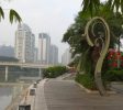 如果你留心,你会发现乘船沿路会经过许多桥。平时一般只从桥上走过,殊不知桥洞中其实别有洞天,几乎每个桥洞中都有壁画或者浮雕,展示广西的重大历史事件,偶尔还能看到在水边垂钓的人。