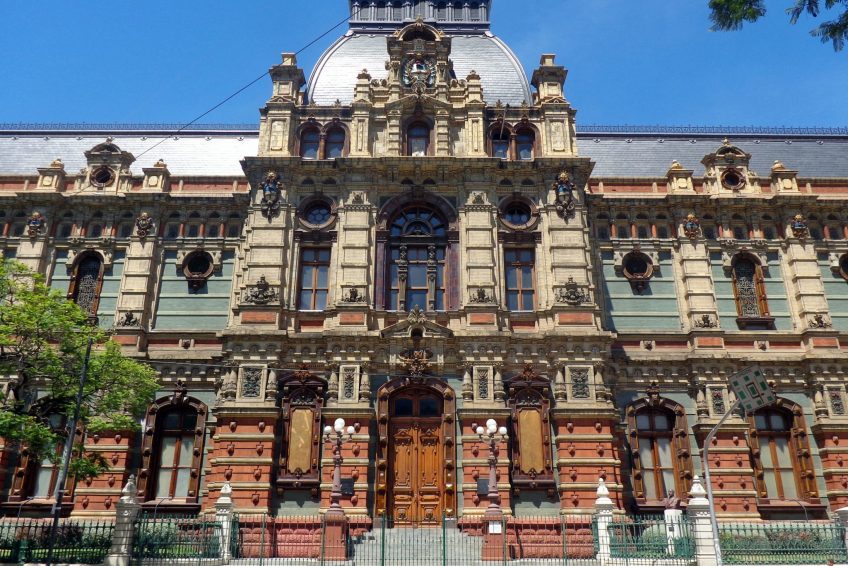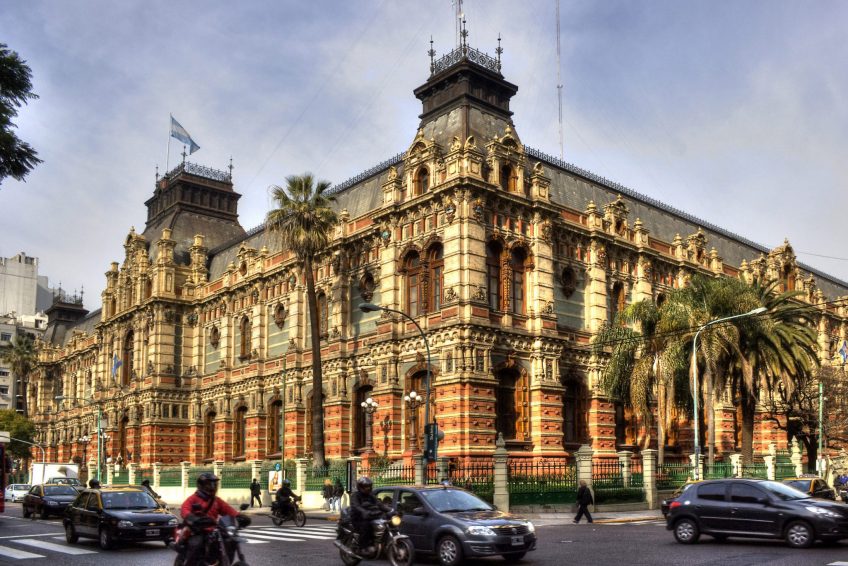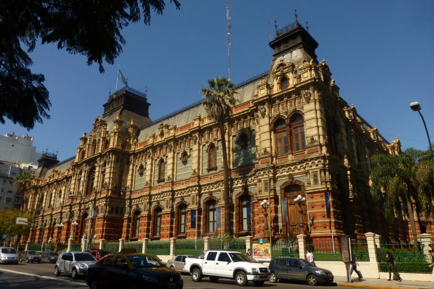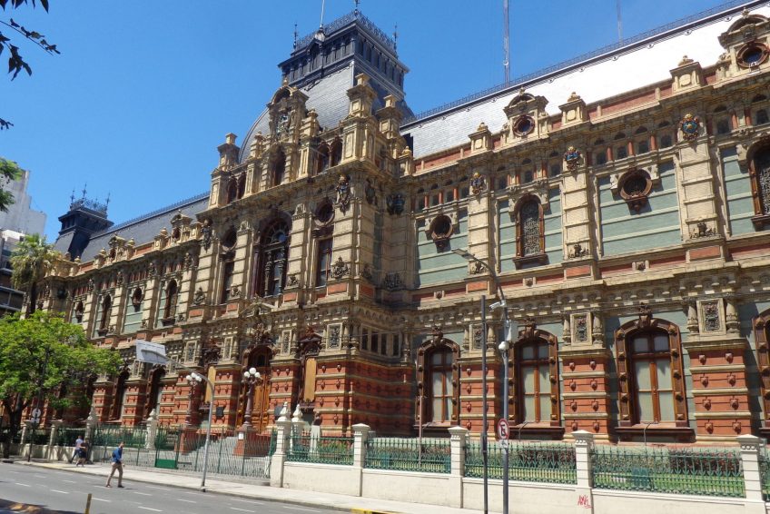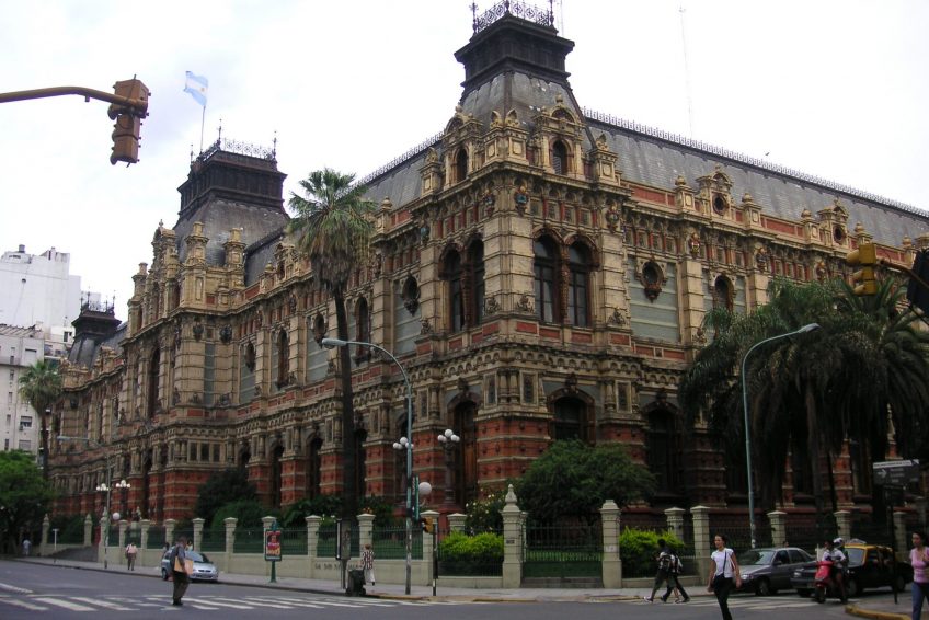 Palacio de Aguas Corrientes(自來水宮)佔據了整個城市街區,建於19世紀下半葉,供應城市的水源。隨著城市的迅速擴張和包括霍亂和甲狀腺在內的一些流行病,在英國工程師約翰貝特曼提出的設計之後,決定採用現代自來水系統。 1887年至1894年間,瑞士工程師CarlosNyströmer和Norweigian建築師Olof Boye對“宮殿”的建造進行了監督。它採用法式曼哈德式修道院,外立面由170,000塊釉面磚和130,000塊琺瑯磚組成,全部由英格蘭和比利時。內部有12個6,000m3的鐵水箱,分佈在三個樓層。