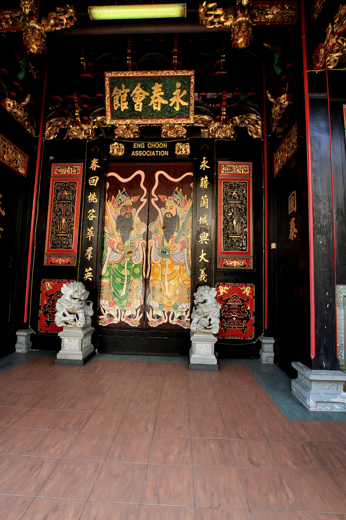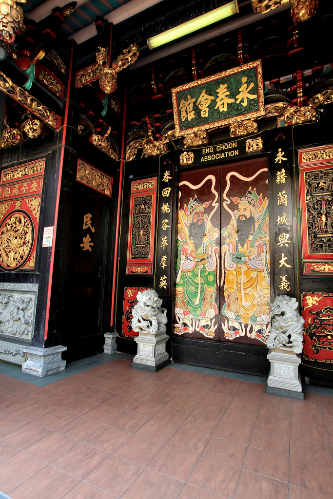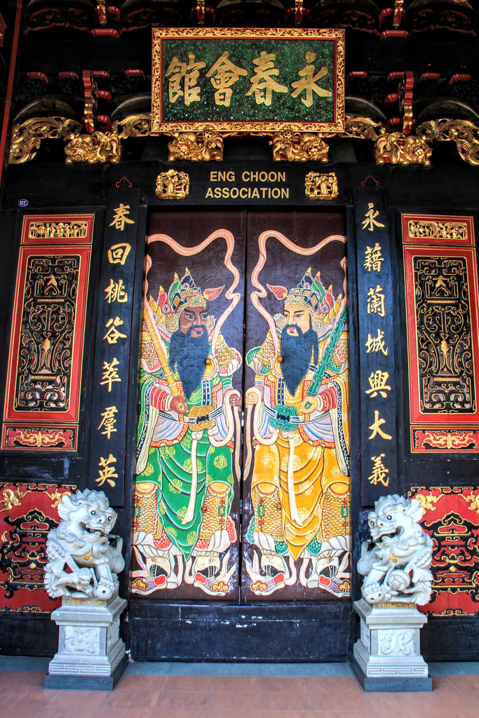 當他們向公眾開放時,我似乎不幸訪問了有趣的地方。 Eng Choon協會同樣是我無法企及的。所以我只能從外面欣賞它。雖然這個地方似乎經過了大量翻新,但可能已經失去了真實性,但令人印象深刻的結果仍然可以原諒。大門上裝飾著中國傳說中的圖像。它由前面的兩隻獅子守護著。大門本身標有金色的吉祥問候。大門外的柱子也非常令人印象深刻,有兩條盤繞在柱子周圍的雕刻龍。我嚴重懷疑這些仍然是真實的,但在這一點上,我並不在乎,我喜歡我所看到的。