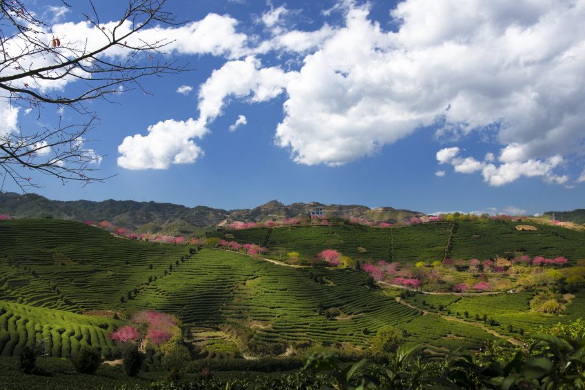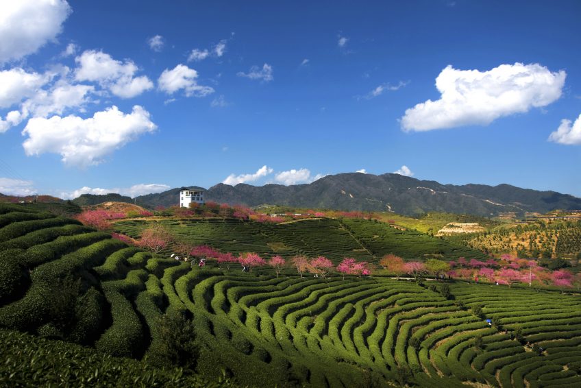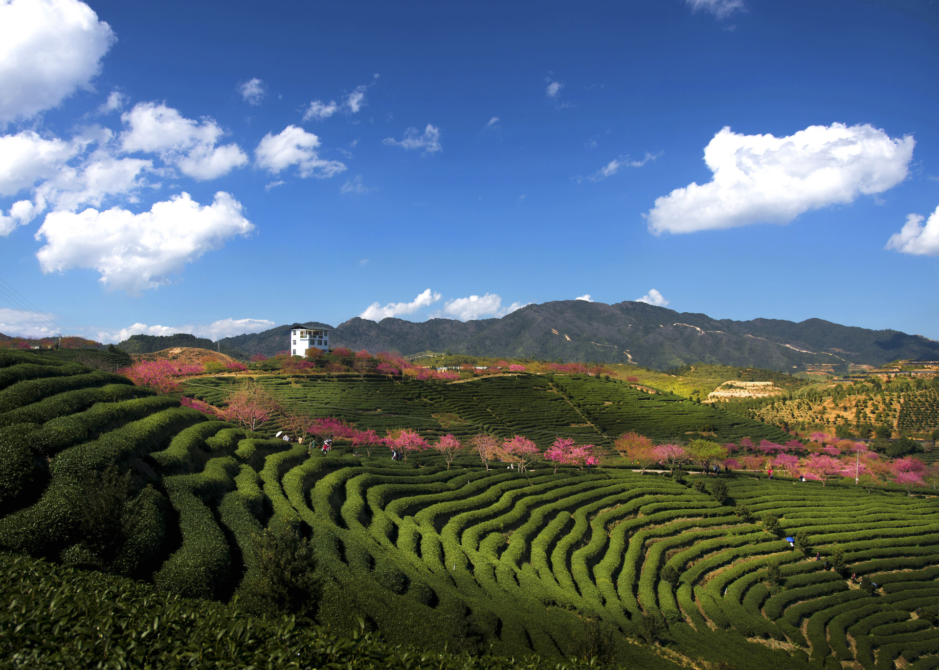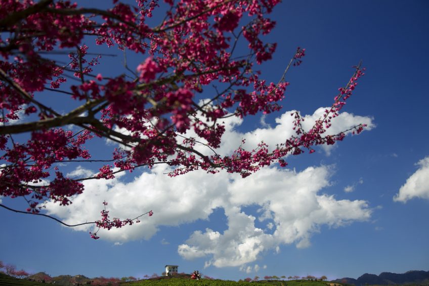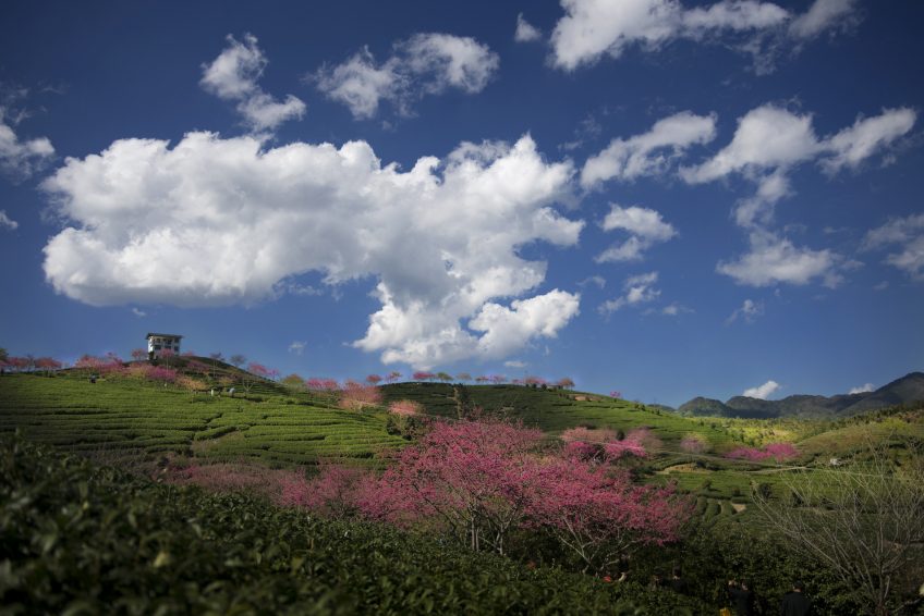 中國東南部福建省漳平市永福鎮茶園的櫻花盛開。