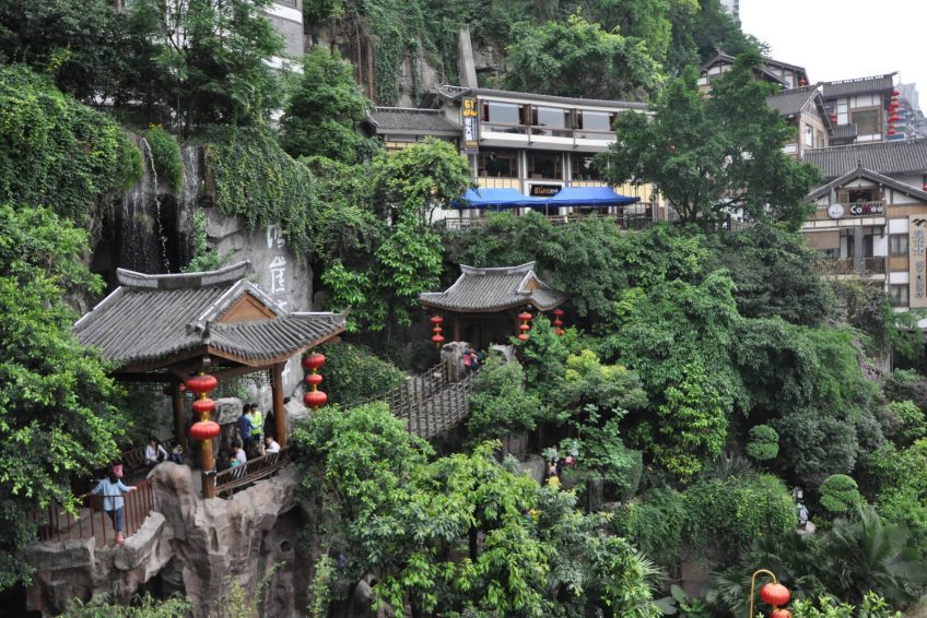 洪崖洞位于重庆直辖市核心商圈解放碑沧白路,长江、嘉陵江两江交汇的滨江地带,坐拥城市旅游景观、商务休闲景观和城市人文景观于一体。以具巴渝传统建筑特色的“吊脚楼”风貌为主体,依山就势,沿江而建,解放碑直达江滨。洪崖洞拥有2300多年的历史。 “洪崖洞民俗风貌区”项目是2005年重庆市政府“八大民心工程”之一,总面积4.6万平方米,是“重庆市重点景观工程”和“AAA级重点旅游项目工程”。该景区以拥城市旅游景观、商务休闲景观和城市人文景观于一体而闻名,并以最具巴渝传统建筑特色的“吊脚楼”风貌为主体,依山就势,沿崖而建,让解放碑直达江滨,是游吊脚群楼、观洪崖滴翠、逛山城老街、赏巴渝文化、看两江汇流、品天下美食的好去处,也是解放碑的会客厅。