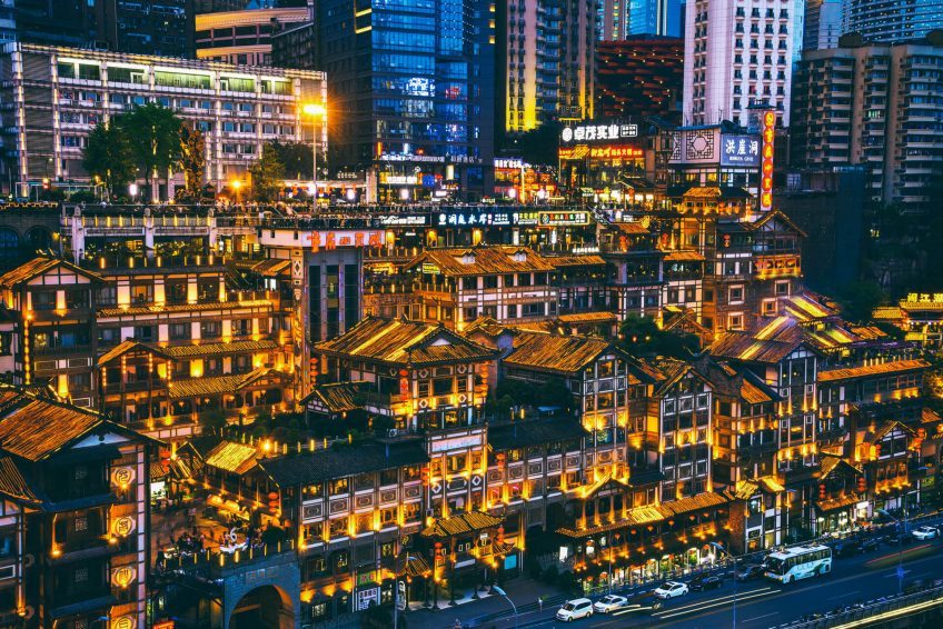 洪崖洞位於重慶直轄市核心商圈解放碑滄白路,長江、嘉陵江兩江交彙的濱江地帶,坐擁城市旅遊景觀、商務休閒景觀和城市人文景觀於一體。以具巴渝傳統建築特色的“吊腳樓”風貌為主體,依山就勢,沿江而建,解放碑直達江濱。洪崖洞擁有2300多年的歷史。 “洪崖洞民俗風貌區”項目是2005年重慶市政府“八大民心工程”之一,總面積4.6萬平方米,是“重慶市重點景觀工程”和“AAA級重點旅遊項目工程”。該景區以擁城市旅遊景觀、商務休閒景觀和城市人文景觀於一體而聞名,並以最具巴渝傳統建築特色的“吊腳樓”風貌為主體,依山就勢,沿崖而建,讓解放碑直達江濱,是遊吊腳群樓、觀洪崖滴翠、逛山城老街、賞巴渝文化、看兩江匯流、品天下美食的好去處,也是解放碑的會客廳。