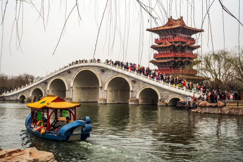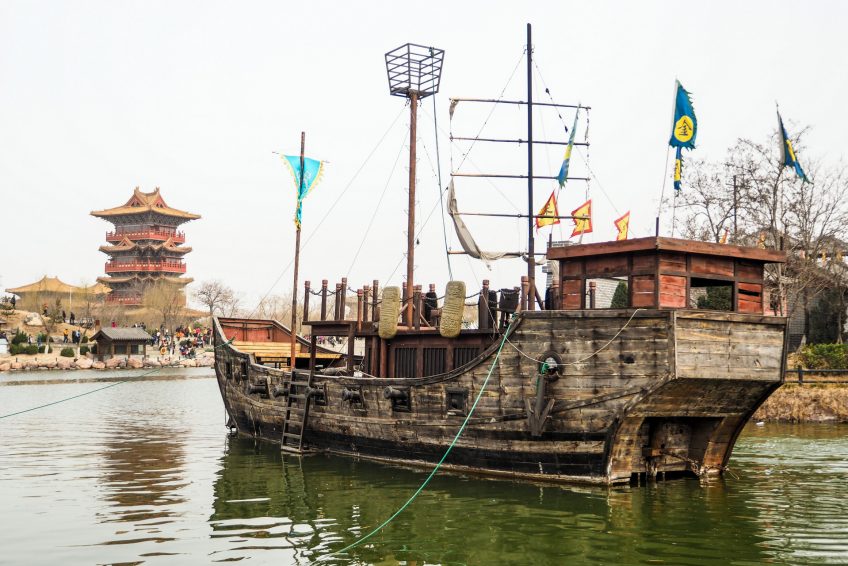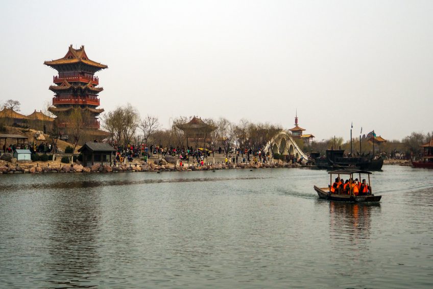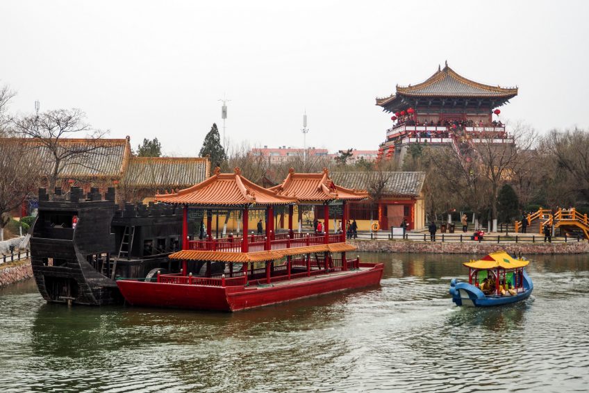 中國河南省開封市市中心,開封清明濱江園林是一個展示宋代文化的主題公園。它是由北宋著名畫家張澤端繪製的“河上的純淨光明節”的複製品。它是中國唯一一個以圖片為原型的仿古主題公園。