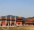 之后坐观光车去看孝陵,这是清东陵中唯一没有被盗的陵墓,不过地宫是不开放的。这里有穿古装表演祭祀大典的节目,但不看表演的话不能进孝陵正门。再往东去还可以参观康熙的景陵、二郎神庙。