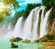 从德夯苗寨顺着九龙溪步行不远,便可见到流沙瀑布。溪水从绝壁之上腾空而下,极高的落差,流水到了下面就散落成流沙状,因此瀑布被称为流沙瀑布。丰水期,滚滚流水从悬崖上飞落入深潭,犹如九龙翻波,气势磅礴;枯水期,流水飘下悬崖,时而如轻纱拂面,时而似珠帘悬挂,宛如白纱荡涤绿潭,温柔秀雅。