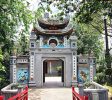 Ngoc Son Temple寺是毗邻还剑湖(Hoan Kiem Lake)的独特建筑群。进入圣殿后,游客将穿过胡克桥,穿过潭泉,这意味着三通门。在第一道门的外面,两个中文字母被涂成红色,这意味着右边的幸福(Phuc)和左边的繁荣(Loc)。第一道门后面是Pen Tower(Thap But),由石头制成,位于Doc Ton山。Pen Tower有五层,高28米。塔的顶部有羽毛羽毛笔的形状,指向天空。塔的主体刻有三个字母“Ta Thanh Thien”,意思是“写在清澈的蓝天”。Pen Tower旨在强调致力于文学和诗歌的寺庙。第二道门被道教符号包围。具体来说,右手是龙的象征,另一方面,左边是老虎。这些符号的特点是大型结构的稳定性,遵循风水理论。最后一扇门有高墙,屋顶和卷帘门。在屋顶上,有一块巨大的石头代表着一个墨水瓶,因此,这扇门被命名为Dai Nghien(书写板或墨水板),形状为一半的桃子。Nguyen Van Sieu将这块石头放在屋顶上,以便每年5月5日Pen Tower的阴影落在墨水石头上。有一块大石头代表一个墨水瓶,因此,这个门被命名为具有一半桃子形状的Dai Nghien(书写板或墨水板)。Nguyen Van Sieu将这块石头放在屋顶上,以便每年5月5日Pen Tower的阴影落在墨水石头上。有一块大石头代表一个墨水瓶,因此,这个门被命名为具有一半桃子形状的Dai Nghien(书写板或墨水板)。Nguyen Van Sieu将这块石头放在屋顶上,以便每年5月5日Pen Tower的阴影落在墨水石头上。