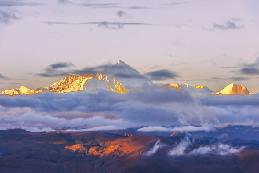 珠穆朗瑪峰(Jo-mo glang-ma),簡稱珠峰,又意譯作聖母峰,位於中國和尼泊爾交界的喜馬拉雅山脈之上,終年積雪。是世界第一高峰。藏語“珠穆朗瑪jo-mo glang-ma ri”就是“大地之母”的意思。藏語Jo-mo“珠穆”是女神的之意,glang-ma“朗瑪”應該理解成母像(在藏語裡,glang-ma有兩中意思:高山柳和母像)。神話說珠穆朗瑪峰是長壽五天女(tshe-ring mched lnga)所居住的宮室。西方普遍稱這山峰作額菲爾士峰或艾佛勒斯峰(Mount Everest),是紀念英國人佔領尼泊爾之時,負責測量喜馬拉雅山脈的印度測量局局長喬治·額菲爾士(George Everest) 。珠穆朗瑪峰最近的一次測量在1999年,是由美國國家地理學會使用全球衛星定位系統測定的,他們認為珠峰的海拔高度應該為8850米。現在中華人民共和國公認的珠穆朗瑪峰的海拔高度由中華人民共和國登山隊於1975年測定,是8848.13米。但外界也有8848米、8840米、8850米、8882米等多種說法。最近,2005年5月22日中國重測珠峰高度測量登山隊成功登上珠穆朗瑪峰峰頂,再次精確測量珠峰高度,珠峰新高度為8844.43米。同時停用1975年的8848.13米。有趣的是,珠穆朗瑪峰雖然是世界第一高峰,但是它的峰頂卻不是距離地心最遠的一點。這個特殊的點屬於南美洲的欽博拉索山。珠穆朗瑪峰高大巍峨的形像一直在當地甚至全世界的範圍內產生著影響。