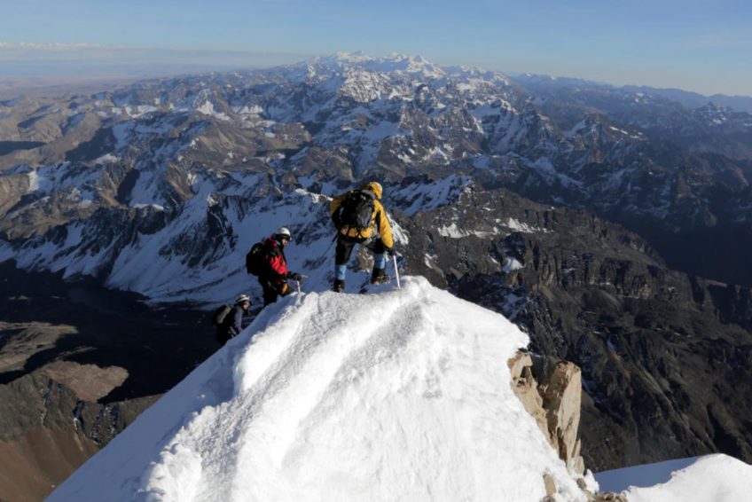 HuaynaPotosí是距离拉巴斯最近的高山。它位于高山之中,距离城市北部大约15英里,这使得这座山成为玻利维亚最受欢迎的攀登山。正常的上升路线是一个相当简单的冰川攀登,有一些裂缝和陡峭的攀登到山顶。然而,山的另一边 – HuaynaPotosíWestFace–是玻利维亚最大的面孔。这1000米高的脸上有几条困难的冰雪路线。