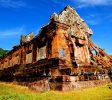 这条小路的尽头是七层砂岩层,这些砂岩层通向上层平台和中央避难所。圣所分为两部分。砂岩的前面部分现在被四尊佛像占据,而砖砌的后面部分,以前包含着中央灵芝,现在是空的。