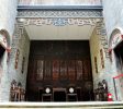 正立面窗户全为葡式百叶窗,其中以上方左右两扇最为精美。窗扇以金属包角,百叶窗上加半圆形彩色玻璃窗,玻璃窗上是灰塑装饰。大宅反映了澳门特有的中西建筑风格合璧的民居特点。