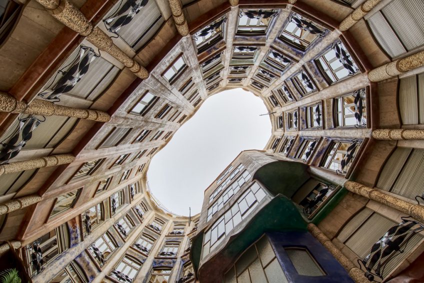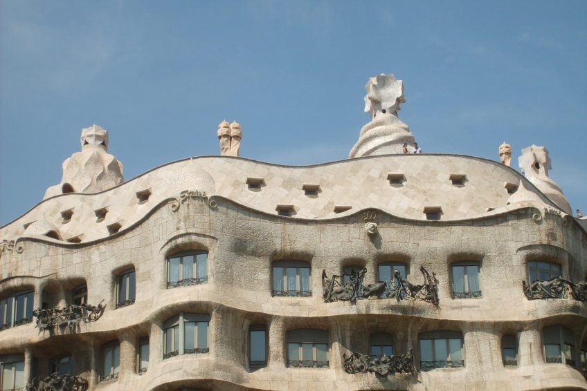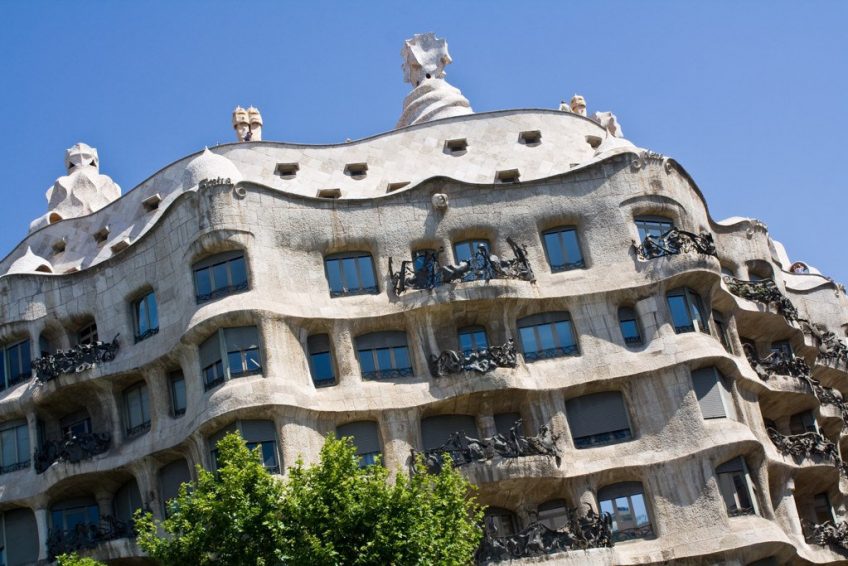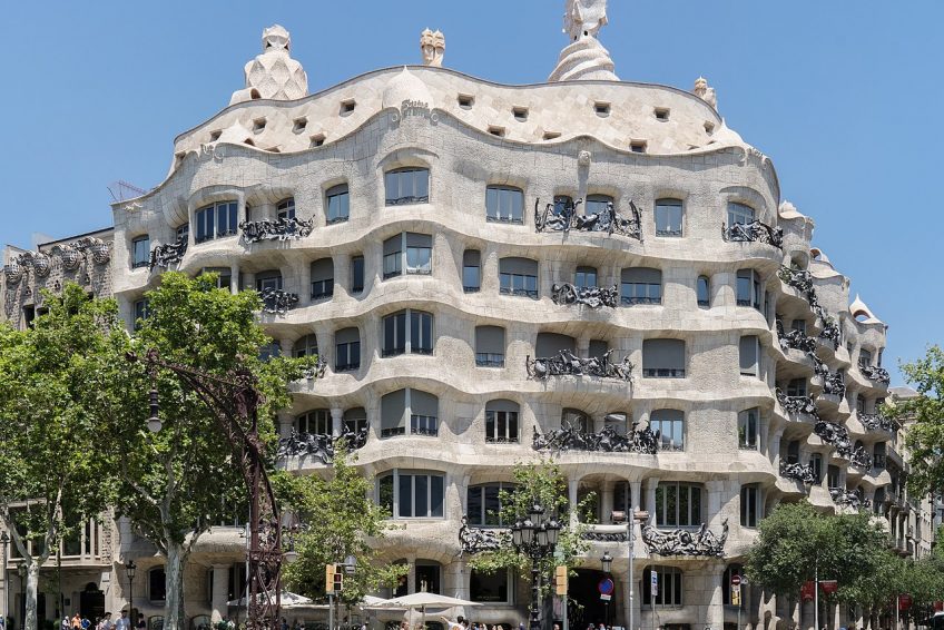 弧形立面是有機建築的獨特典範。它與CasaBatllò形成鮮明對比,擁有色彩繽紛的俏皮外觀。高迪故意專注於建築的設計,使用非常少的油漆並使材料自然。